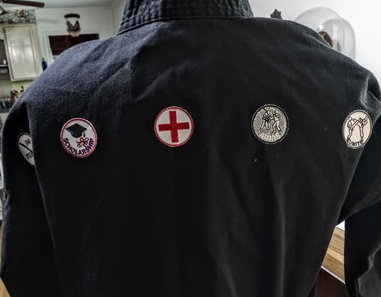 Today I finished sewing patches on work and karate uniforms.