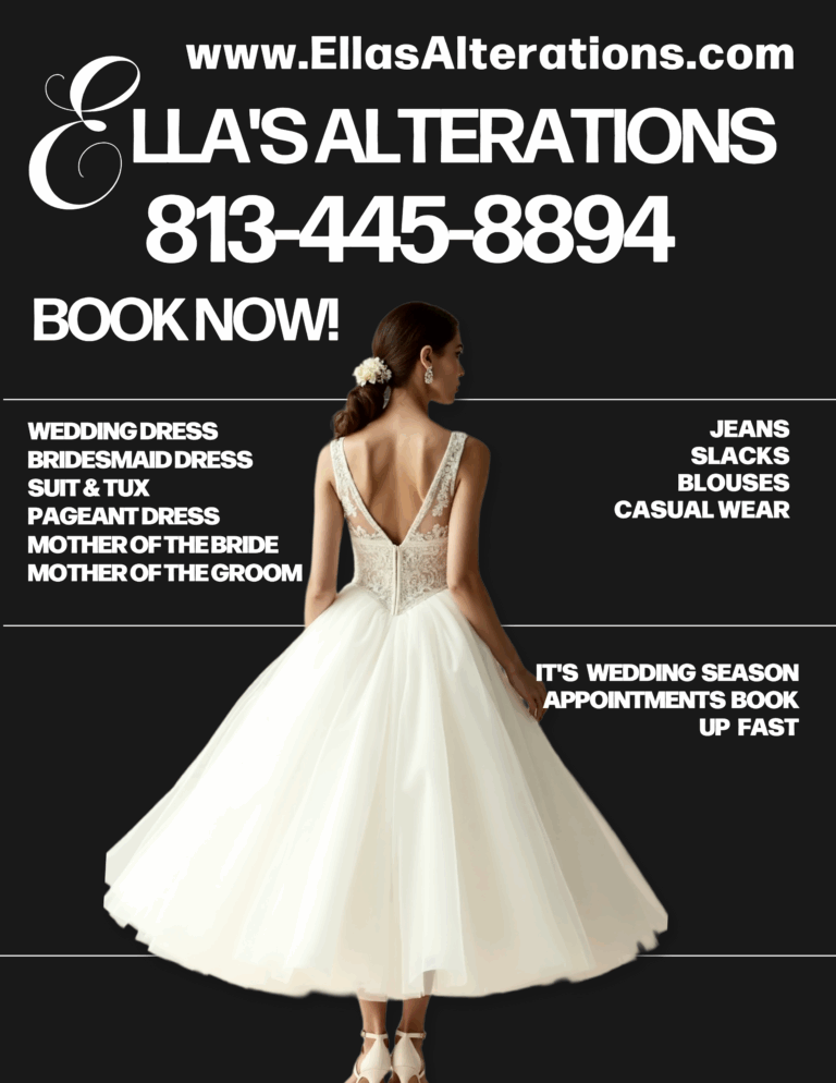 #EllasAlterationsLLC #weddingdress, #bridalguide, #bridetobe, #weddingplanning, #bridalstyle, #weddingtips, #bridalfashion, #bridalwear, #weddinginspo, #bridedress, #weddinglook, #weddingchecklist, #sayyestothedress, #weddingdaystyle, #bridevibes, #alterationspecialist, #weddingetiquette, #bridalqanda, #gownfitting, #brideadvice, #weddingexpert, #bridalconsultation, #weddingdresstips, #bridaldosanddonts, #styleyourwedding, #weddingwardrobe, #floridabride, #zephyrhillsweddings, #ellasalterations, #bridalchecklist