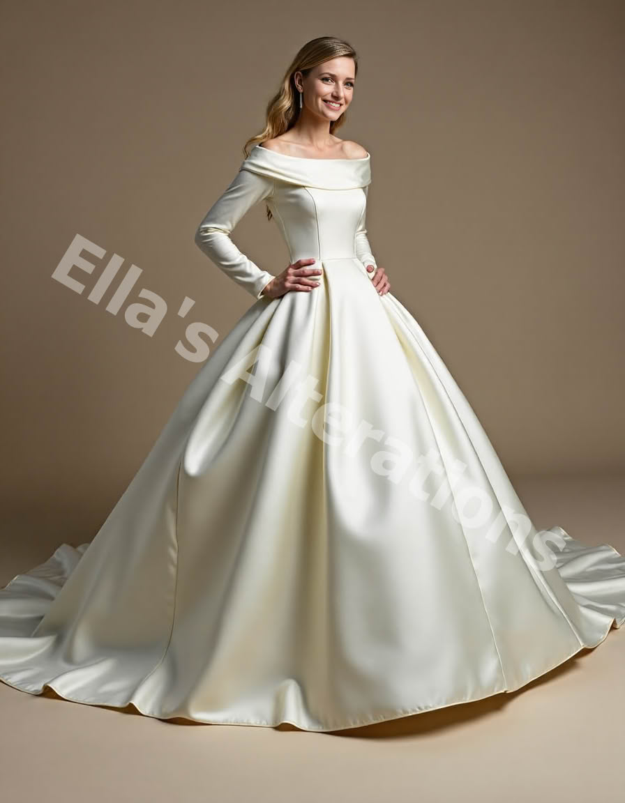 It offers a clean, structured finish that holds its shape well, making it ideal for ball gowns, mermaid dresses, or anything with dramatic flair.