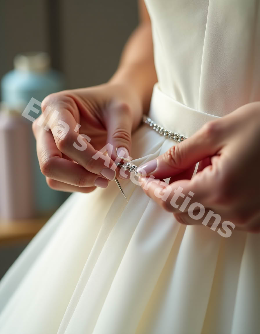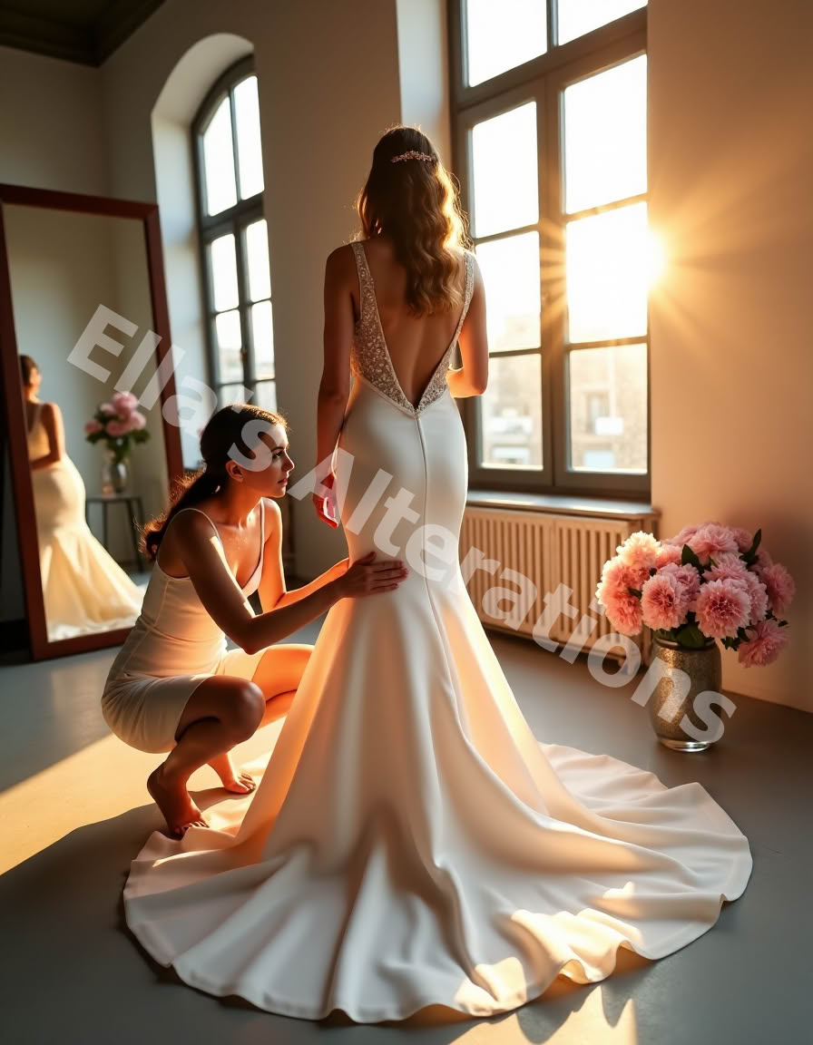 - Bustle Creation: From French to American to ballroom bustles, we engineer secure, hidden buttons and loops so you can dance without tripping over your train.